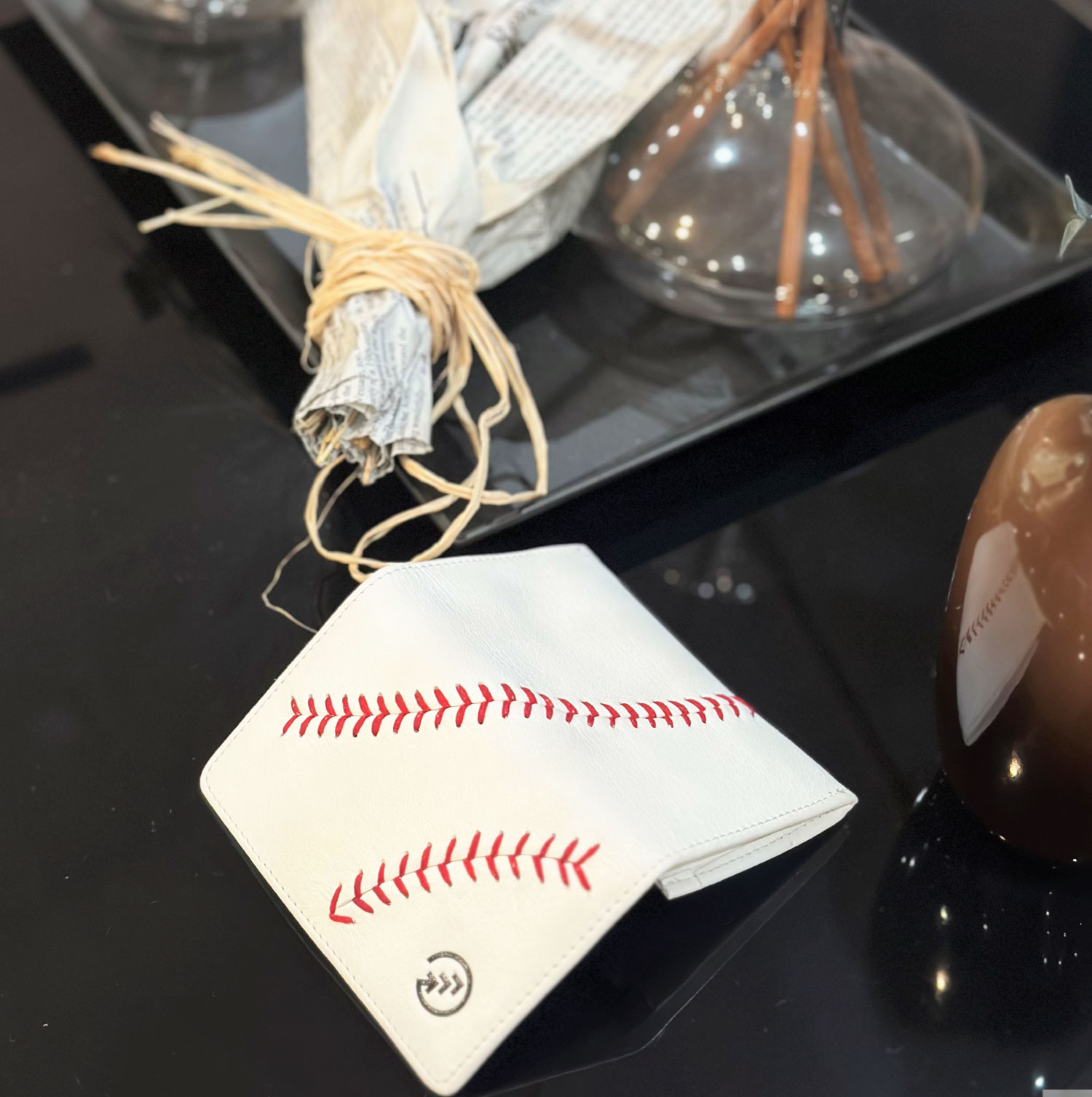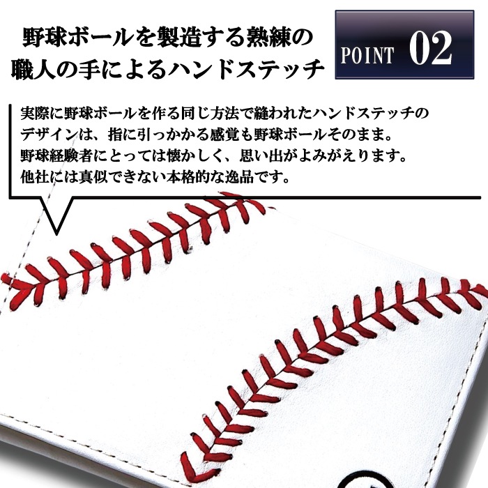 硬式野球ボールの特徴であるハンドステッチが入った名刺入れです。