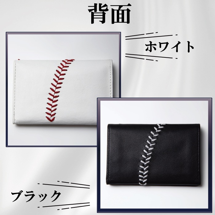 野球ボール革名刺入れ ハンドステッチ名刺入れ 【ホワイト・ブラック】 野球グッズ