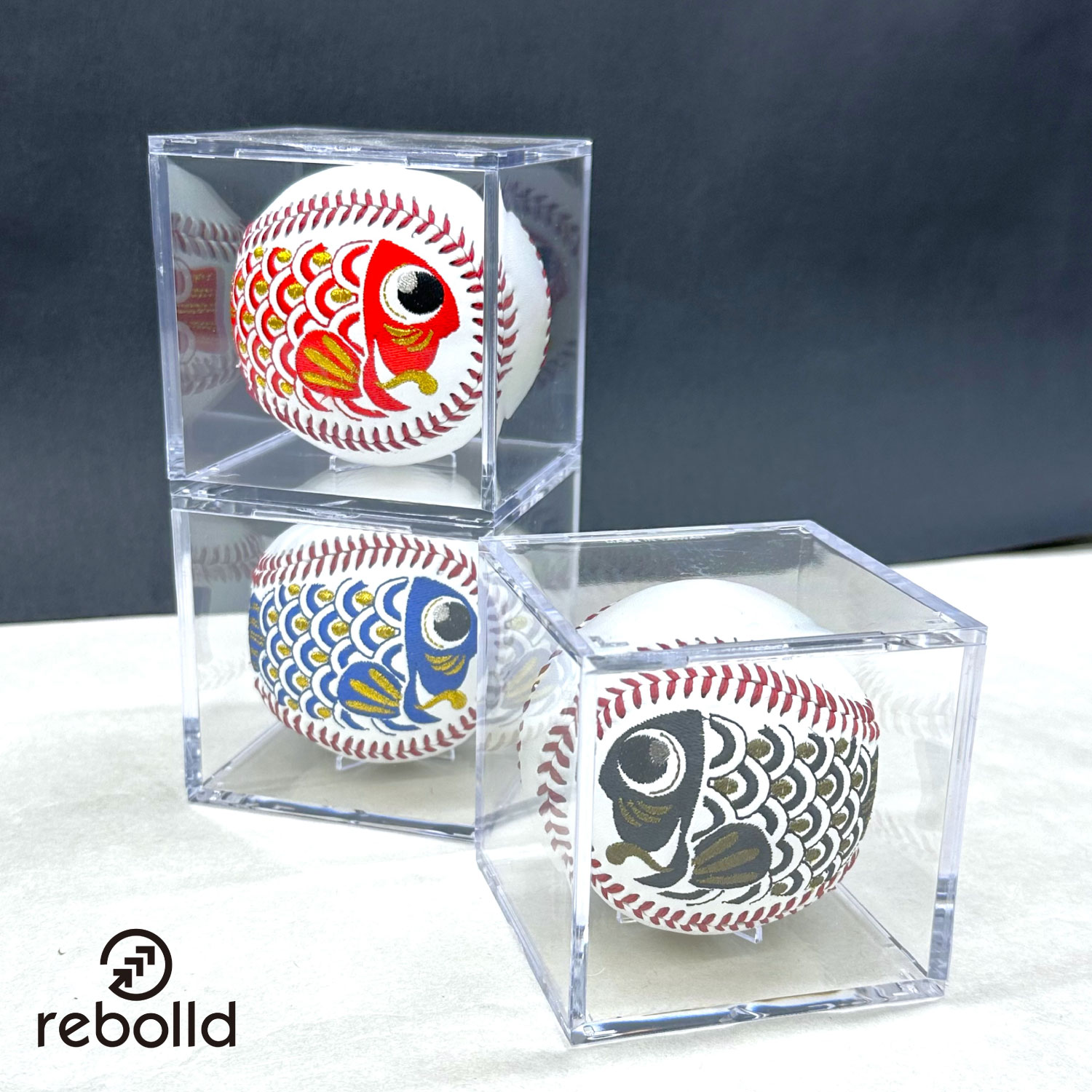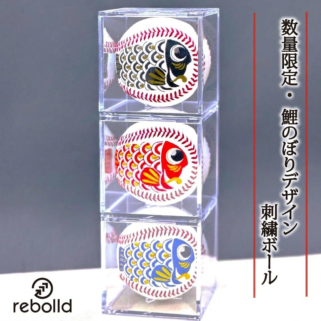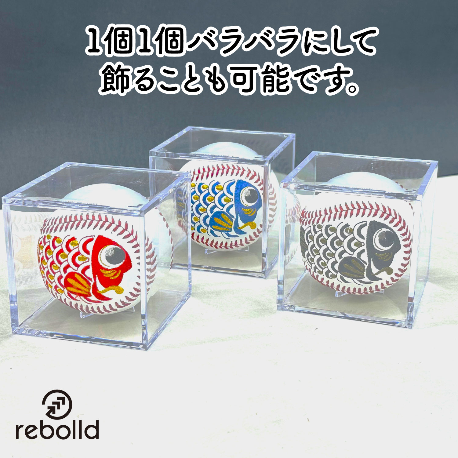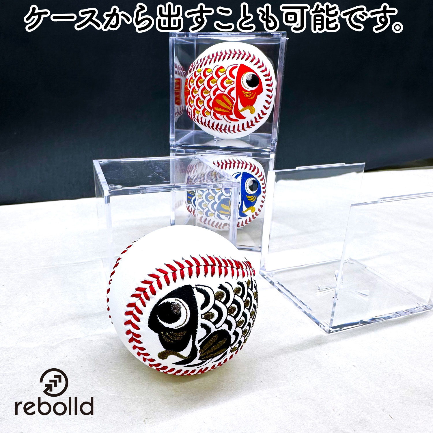 【期間限定・数量限定】鯉のぼりボール 3個セット 黒・赤・青の3色/ケース付き 硬式野球ボール型 ギフト 刺繍ボール こどもの日