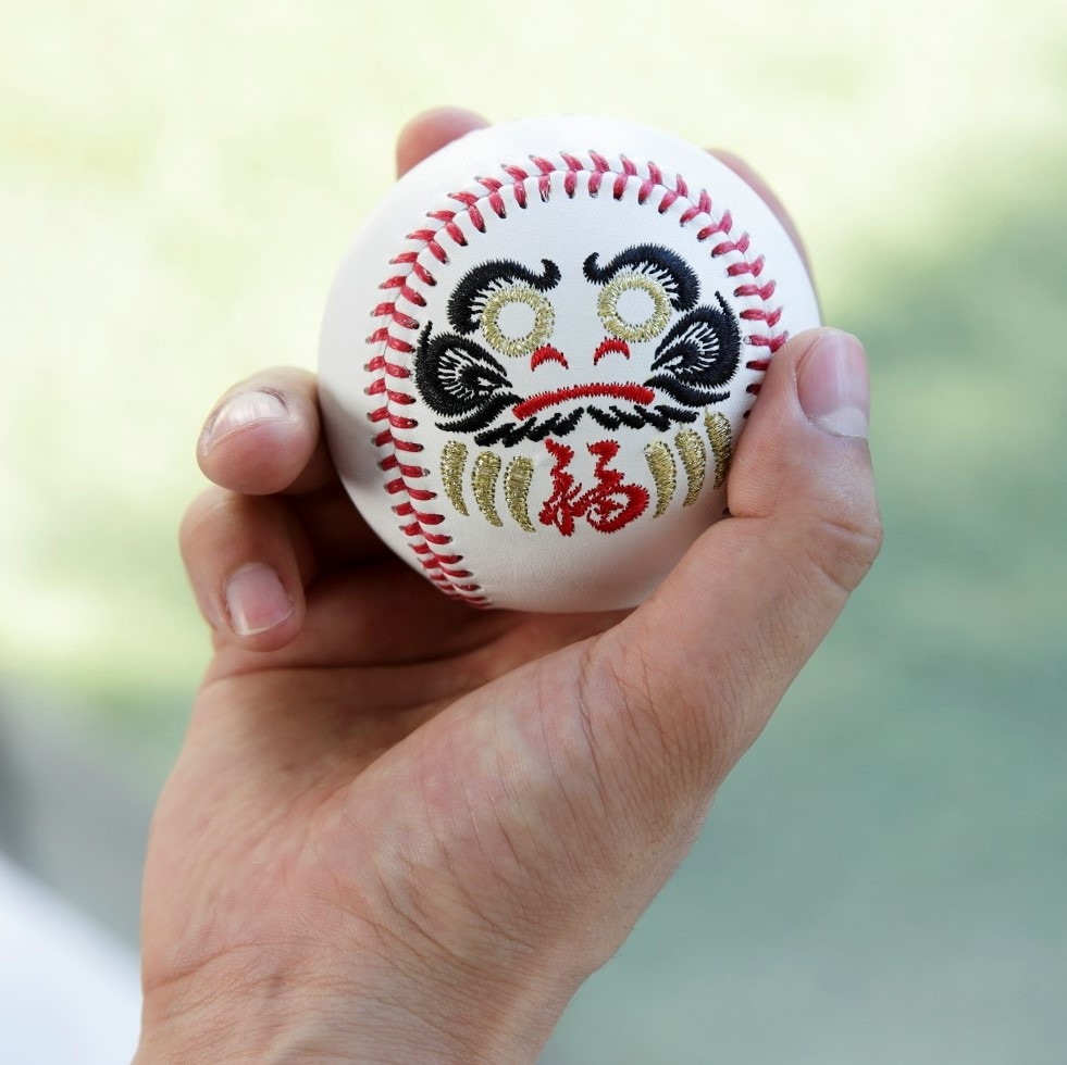 日本伝統のだるまと野球ボールが組み合わさり、最高の縁起物ができました。
